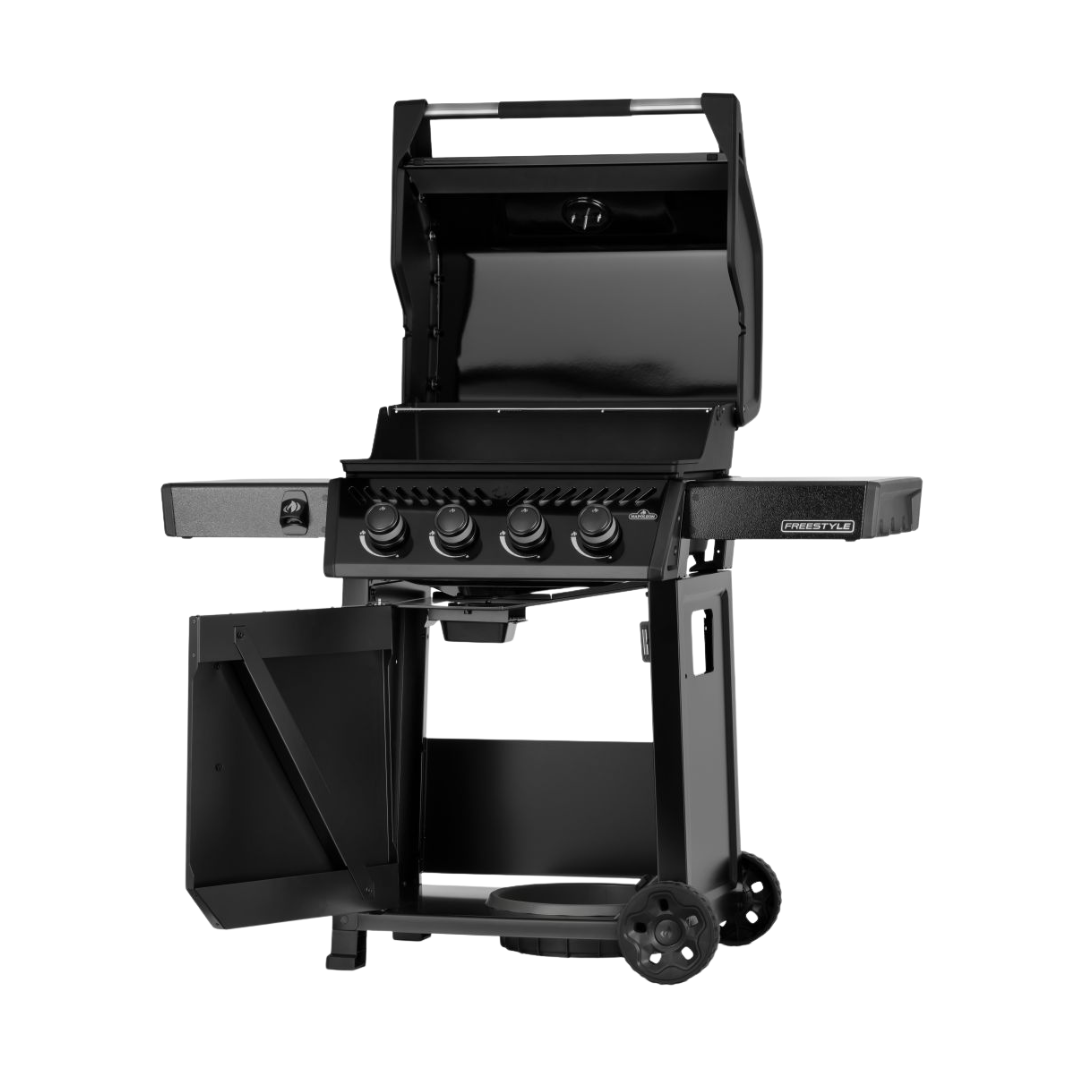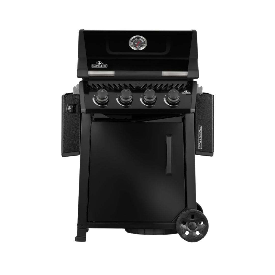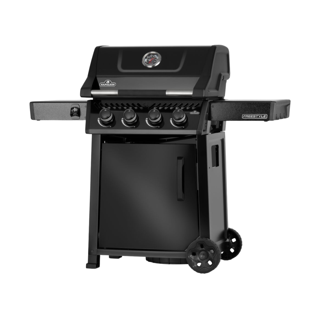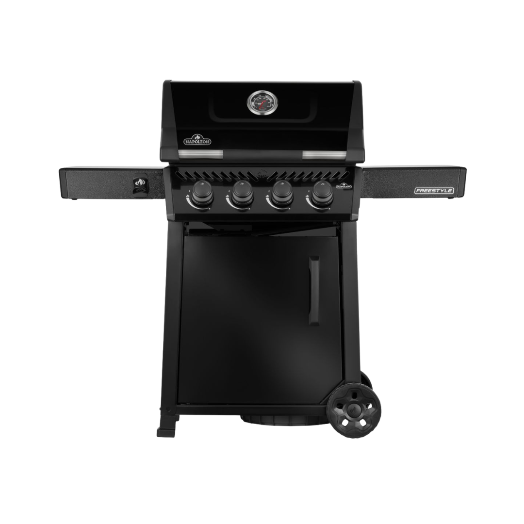 Il modello Napoleon Freestyle 425 offre caratteristiche eccellenti e un valore imbattibile in un design compatto e salvaspazio. Ideale per patii, balconi e cortili di piccole dimensioni. Il sistema di accensione affidabile JETFIRE accende i bruciatori all’istante, mentre i bruciatori in acciaio inox e l’indicatore di temperatura ACCU-PROBE garantiscono un calore costante e un controllo preciso. Le griglie di cottura in ghisa porcellanata WAVE trattengono i succhi e garantiscono una cottura perfetta in ogni occasione. I ripiani laterali pieghevoli con ganci per utensili e apribottiglie integrati consentono di tenere gli oggetti essenziali a portata di mano senza occupare spazio extra. Resistente, facile da spostare grazie alle robuste ruote e con un’elegante finitura nero, Freestyle rende le grigliate quotidiane semplici, eleganti e piacevoli.